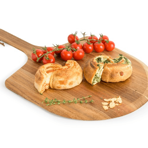 A typical Sicilian thick crust, fluffy and crunchy at the same time, topped with tomatoes, roasted garlic and onions as well as Grande mozzarella cheese.