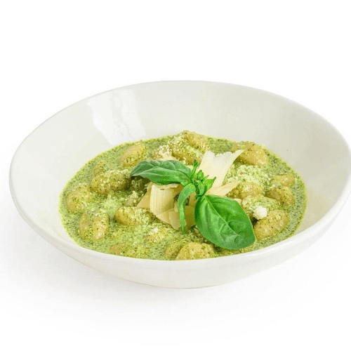 Potato pasta with basil, cream & parmesan cheese