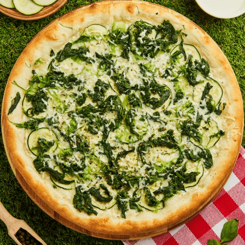 NY STYLE CHEESE PIE made with plant based cheese !large only! Toppings available: $4 whole pie $2- half pie *we will add more vegan toppings in the near future!