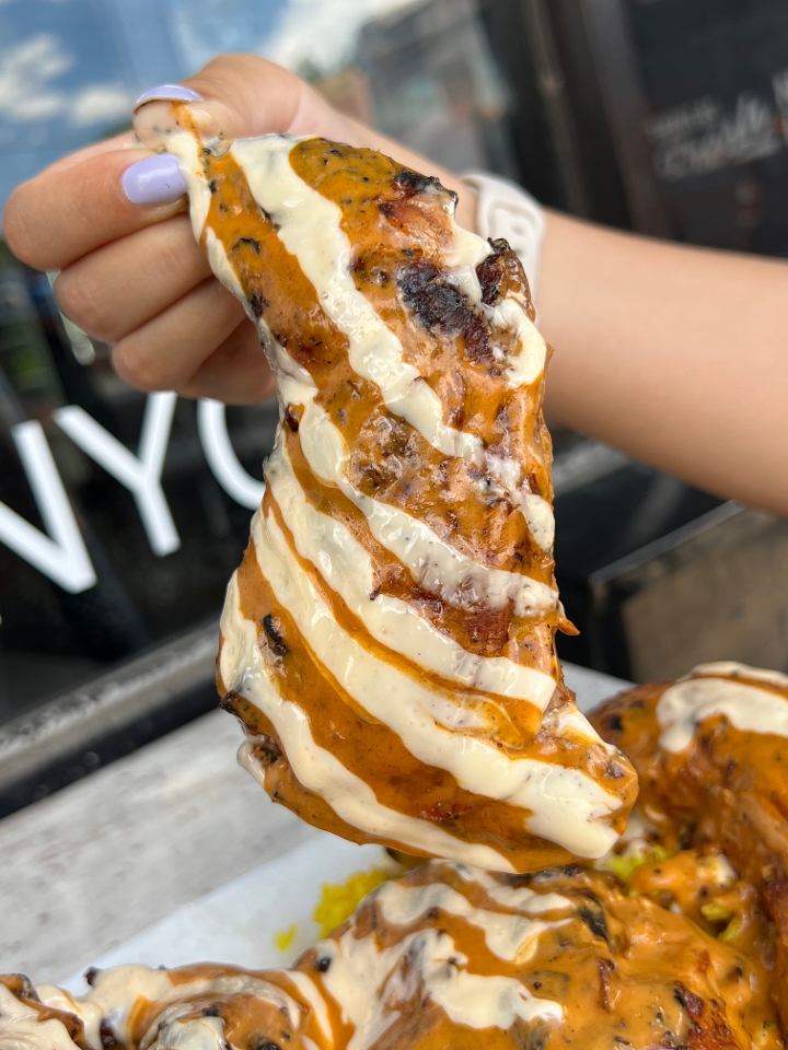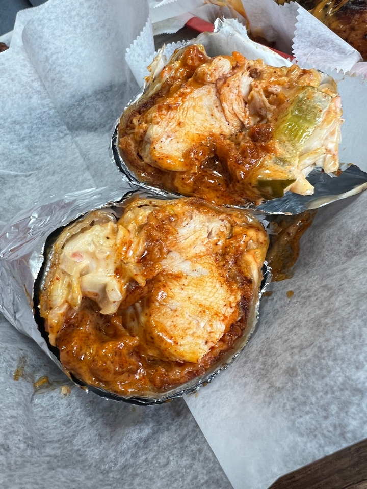 Boneless Fried Chicken sauced with your choice of sauce. Topped with fresh jalapenos, onions, and chickys cheese. Drizzled with chickys sauce.